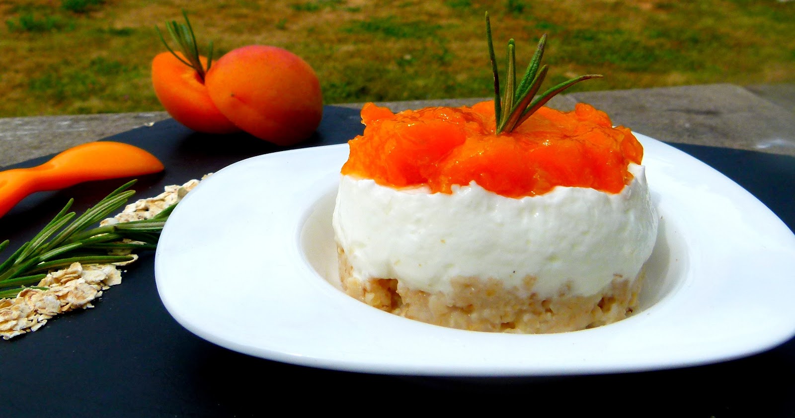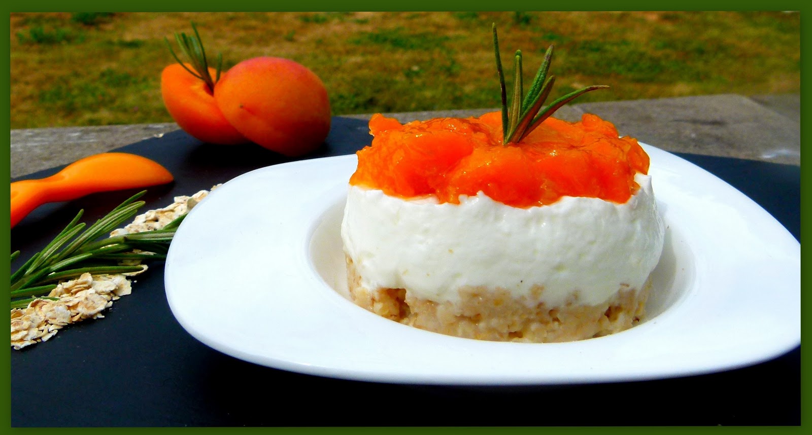 Une base "porridge" à base de flocons d'avoine, du fromage blanc, de bons abricots cuits et une touche de romarin... un dessert gourmand à souhait et joli comme tout pour nos bambins gastronomes !!!